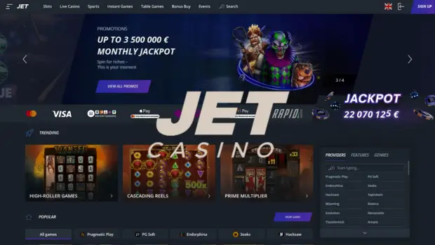 Galaktika N.V. created Jet, the platform we’re looking at today, in 2020. The site provides every player with the opportunity to enjoy a large selection of popular casino games as well as sports betting capability at the same time, making it a fantastic choice for both casino and sports betting fans.