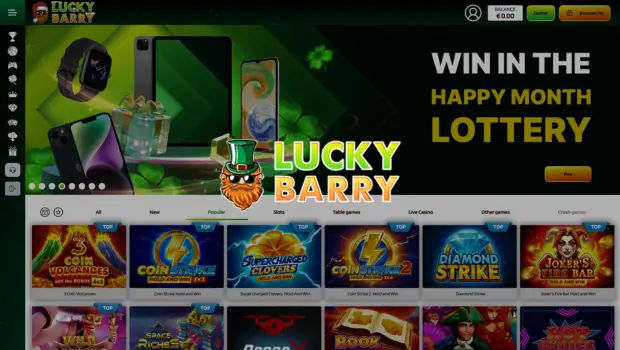 Lucky Barry Casino brings a large mix of online slots from well-known studios such as BGaming, Boongo, Quickspin, Playson, EvoPlay, NetEnt, Yggdrasil, and Playtech. Popular titles like 3 Coin Volcanoes, Supercharged Clovers, Book of Aztec, Thunder Coins XXL, Royal Express, and Joker’s Fire Bar Hold and Win are displayed right on the main page, making it easy for players to jump into fast gameplay. New releases appear quickly on the platform, so fans of fresh content always have something to explore.