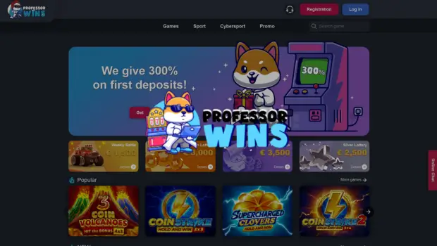Professor Wins Casino opened its doors in 2023, and the site feels like something built by people who understand what players actually need. The homepage loads fast, the layout is predictable in a good way, and you immediately see the core tabs: Games, Sport, Cybersport, Promo, and Application. During testing, nothing felt buried or hidden. Everything you expect from a modern casino sits where it should. The minimalistic layout creates a lightweight feel, with no unnecessary piles of promos getting in the way.